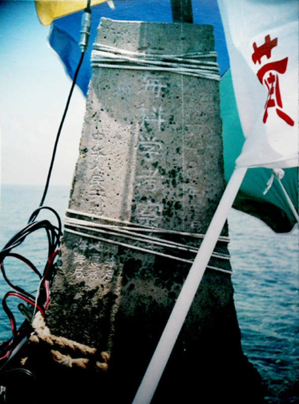 中國測量局、地震局和海洋局於1980年在黃巖島放置的石碑,圖片攝於1995年 資料圖