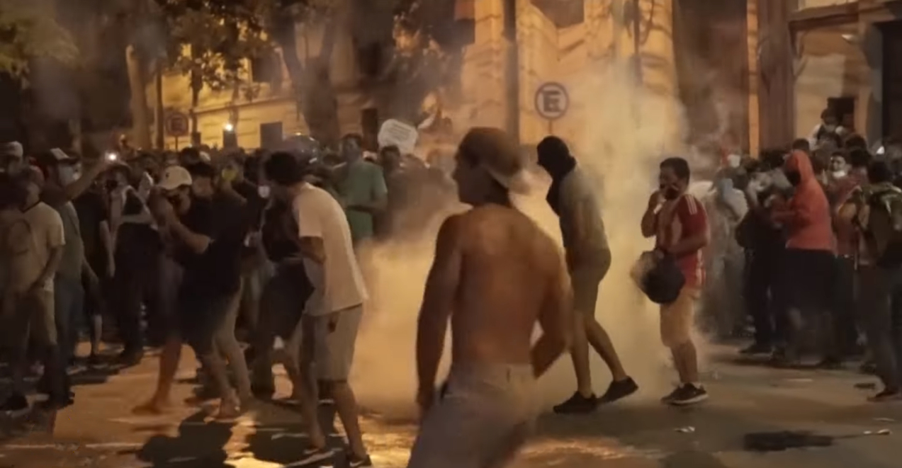 巴拉圭民眾上街抗議,向警方投擲石塊 視頻截圖