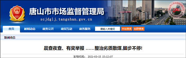 唐山市場監管局網站提醒,市民朋友如果發現經營民用劣質散煤的違法行為,請及時撥打12315舉報!