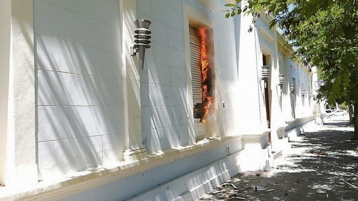 示威者燒燬阿爾喬尼的辦公室(視頻截圖)