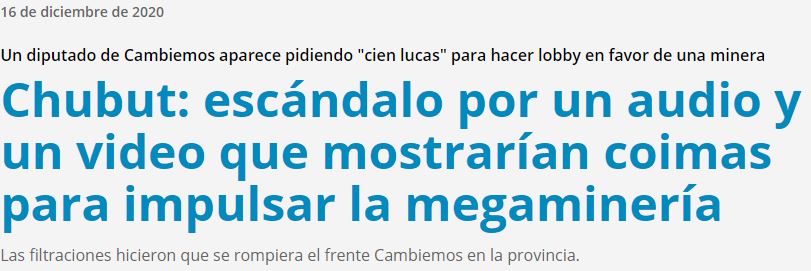 阿根廷媒體pagina12報道:賄賂推動了大規模採礦