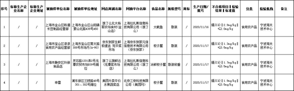 食用農產品抽檢不合格產品信息 圖源:上海市市場監管局