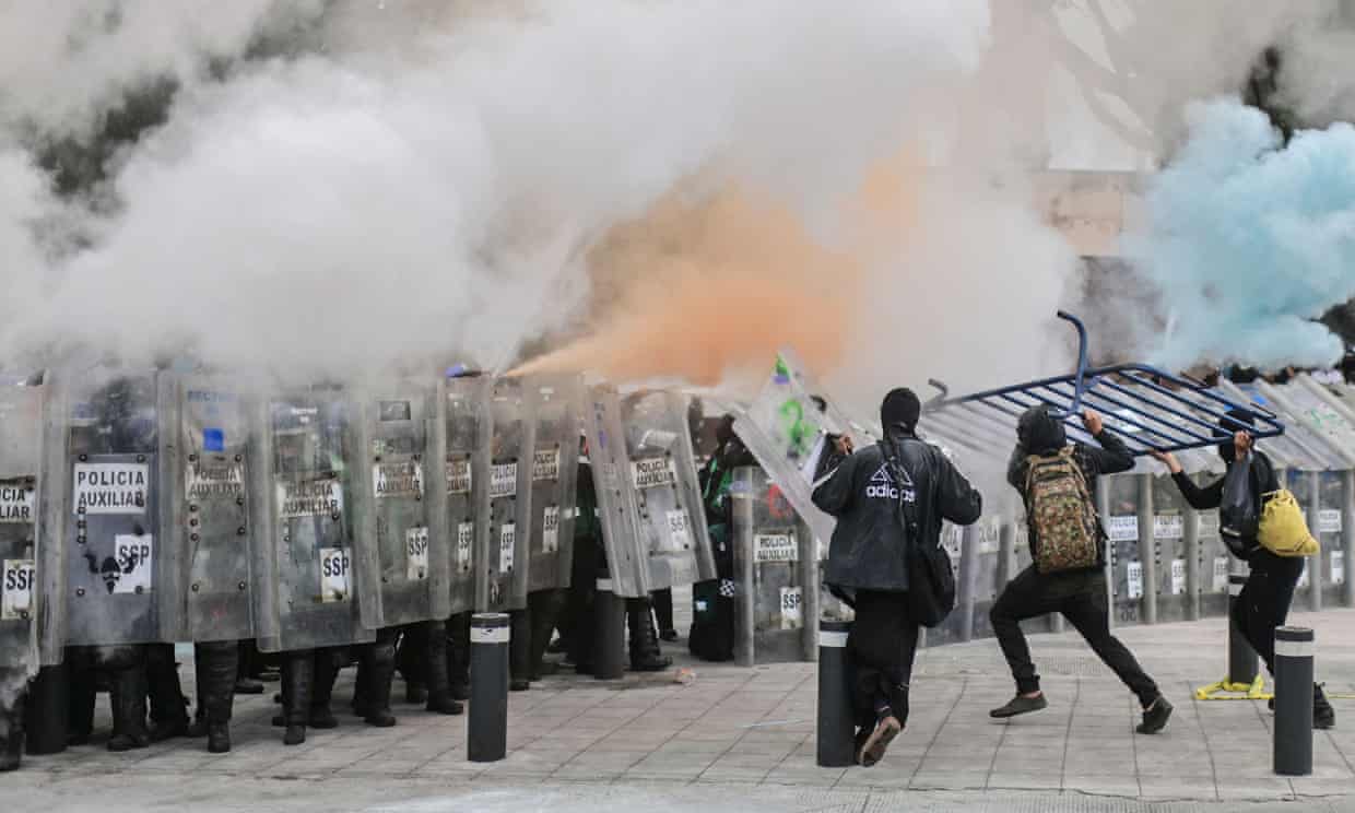 墨西哥警方與抗議民眾爆發激烈衝突,圖源:Pedro Pardo/AFP