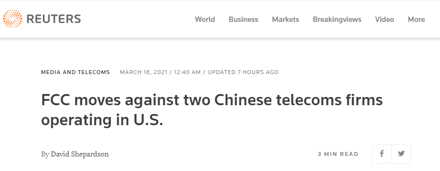 美國聯邦通信委員會在官網發佈的聲明中聲稱,“促進國家安全是委員會公共利益責任的組成部分,今天的行動旨在保護國家的電信基礎設施免受潛在的安全威脅。”