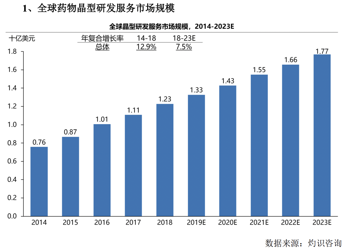 該公司引用灼識諮詢數據顯示,雖然全球藥物晶型研發服務行業市場規模在過去幾年穩步提升,但2018年全球市場規模僅為12.3億美元,整體市場空間較為有限。