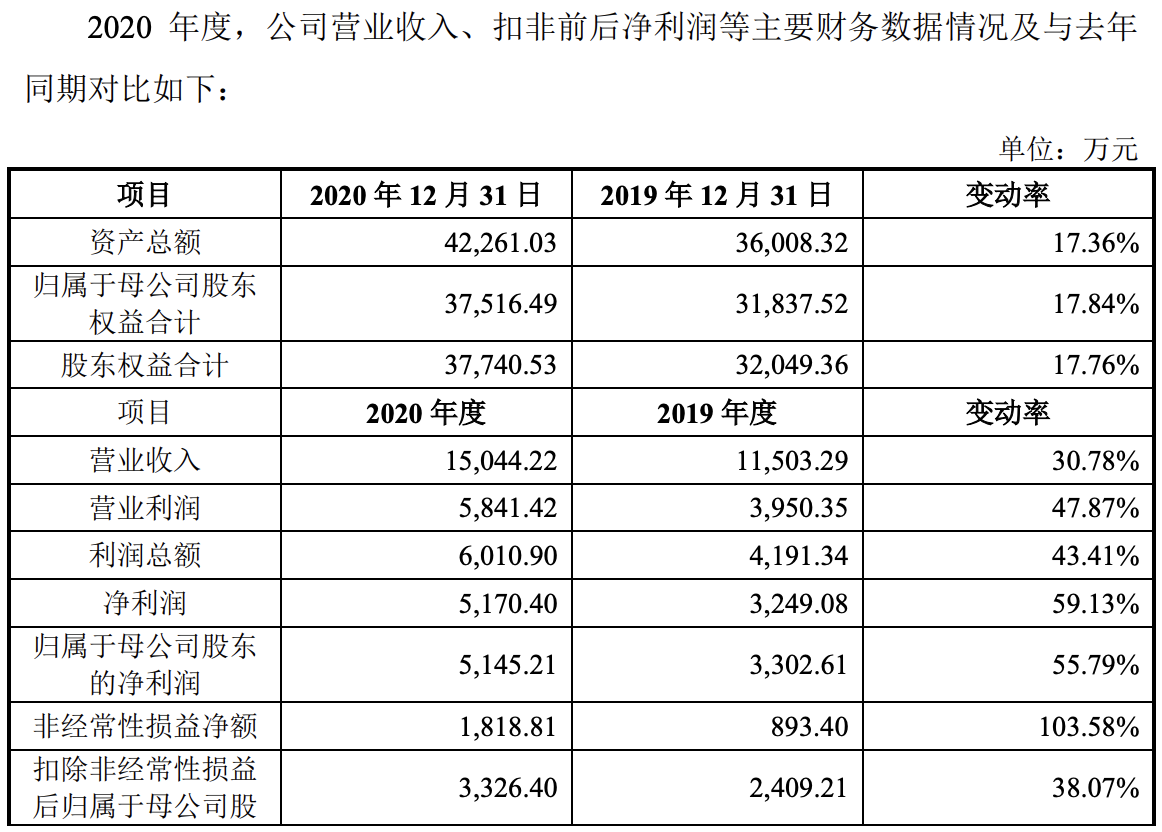 2018至2020年度,公司營業收入分別為12869.22萬元、11503.29萬元和15044.22萬元,營業收入複合增長率為8.12%。