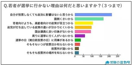 此外,同研究還指出,根據巖手日報2004年的調查,年輕人不投票的原因主要就是“麻煩”、“不關心”,以及“有事情,沒空去投票”。但是其中最嚴重的還是一點:無論選了誰,都沒辦法改變政治。
