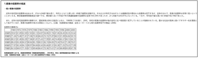 該文章還提到,根據2021年2月19日日本文部科學省的“主權者教育推進會議”的報告指出,過往三次的選舉中,18、19、20這三個年齡段的投票率還是低。