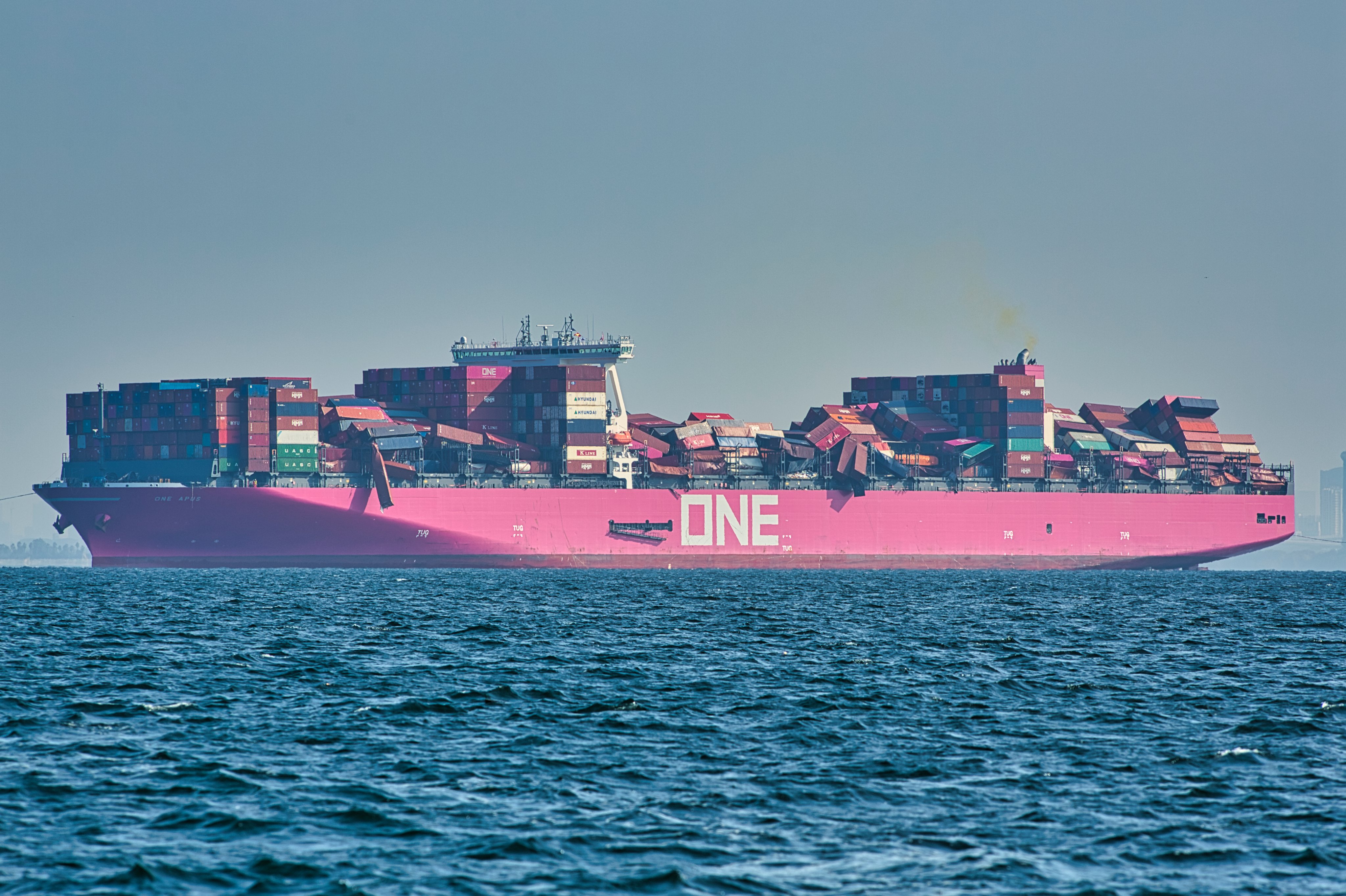 去年11月30日,日本ONE公司集裝箱輪前往北美途中在北太平洋遇險,1816箱墜海,被迫折返日本