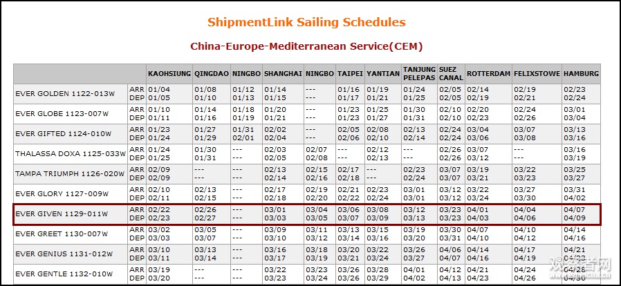 如無意外,長賜輪本來將在4月初抵達歐洲,分別在荷蘭鹿特丹港、英國費利克斯託港和德國漢堡港卸貨。