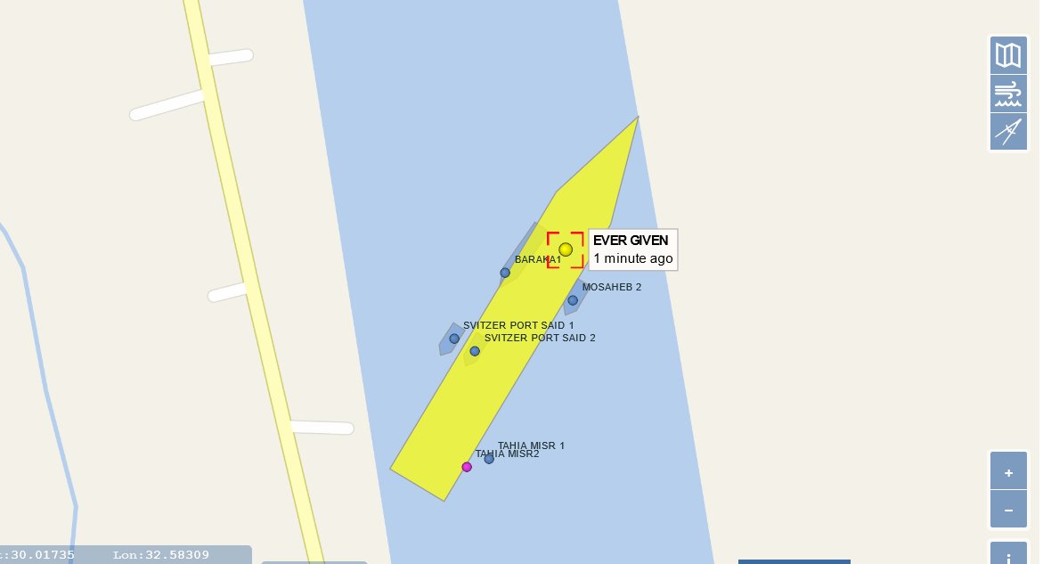根據最新消息,事故發生約33小時後,現場消息稱,輪船已經部分浮起。被堵塞的最前面一艘輪船已經移動。運河航道預計不久將恢復通行能力。