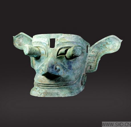 二號祭祀坑出土青銅縱目面具,圖自三星堆博物館。