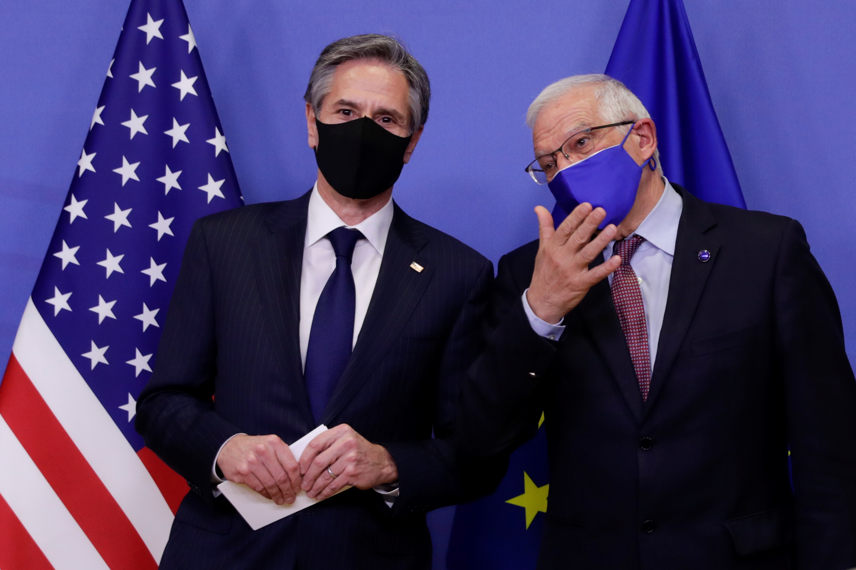 (觀察者網訊)據路透社報道,當地時間3月24日,美國國務卿布林肯(Antony Blinken)與歐盟外交與安全政策高級代表兼歐委會副主席博雷利(Josep Borrell )舉行會談,雙方會後發表聯合聲明,同意重啓美國與歐盟之間關中國的雙邊對話,並共同努力應對俄羅斯“具有挑戰性的行為”。