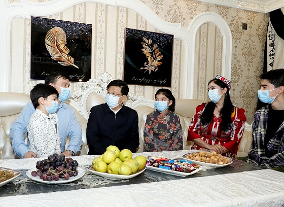在烏魯木齊市水磨溝區山水蘭德小區,趙克志分別來到熱依木·毛爾東、烏斯曼·牙生的家中,與兩家人促膝交談。聽到他們介紹現在家庭收入明顯提高,生活在智慧小區很安心,娃娃上下學路上很放心,烏魯木齊環境、交通、教育、治安等方面和五年前比都有了巨大的變化,趙克志説,幸福的生活源於黨的好政策,家庭的美滿離不開國家的發展進步,希望大家格外珍惜當前新疆安定和諧的社會環境,用勤勞的雙手創造更加幸福的生活。烏斯曼·牙生的兒子和女兒告訴趙爺爺,他們的理想一個是考上清華大學,將來當個飛行員保衞祖國藍天,一個是考上新疆醫科大學,將來當個好醫生救死扶傷,趙克志高興地勉勵他們好好學習,加倍努力,早日實現自己的人生目標,長大後好好孝敬父母,報效國家。