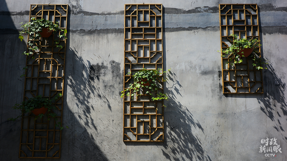 △走進郎官巷,可以看到街區外的高樓,新舊建築風格交相輝映。(總枱央視記者彭漢明拍攝)