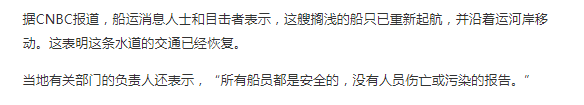 此外,在美國消費者新聞與商業頻道(CNBC)的官網和其推特賬號也未搜索到關於該貨輪移動的相關內容。