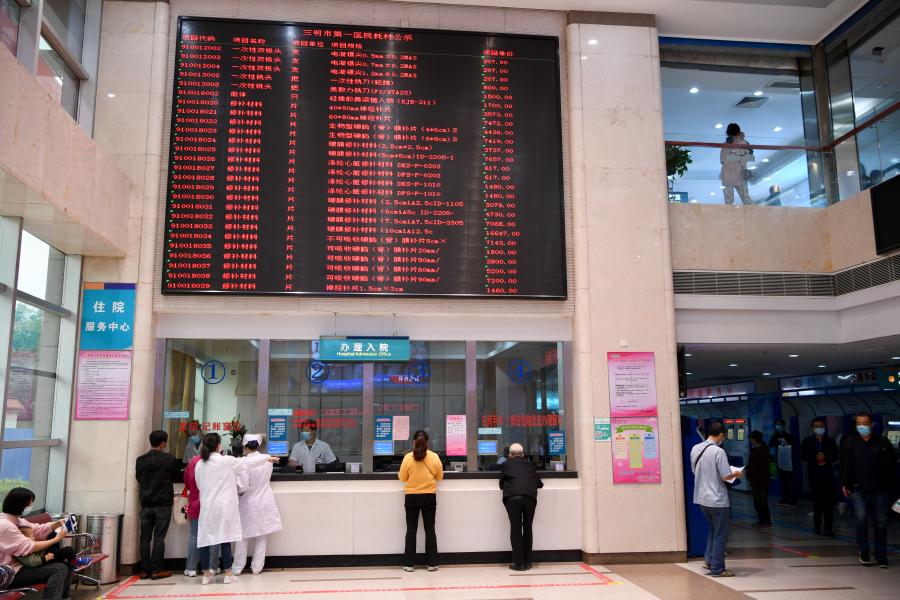 2020年11月18日,居民在福建省三明市第一醫院醫保辦諮詢、辦理手續。(新華社記者姜克紅攝)