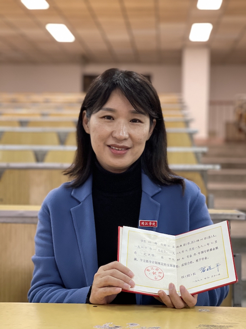 △這是閩江職業大學中文秘書專業1992屆學生任濤,她手裏拿的是習近平當時簽發的畢業證書。(總枱央視記者盧心雨拍攝)
