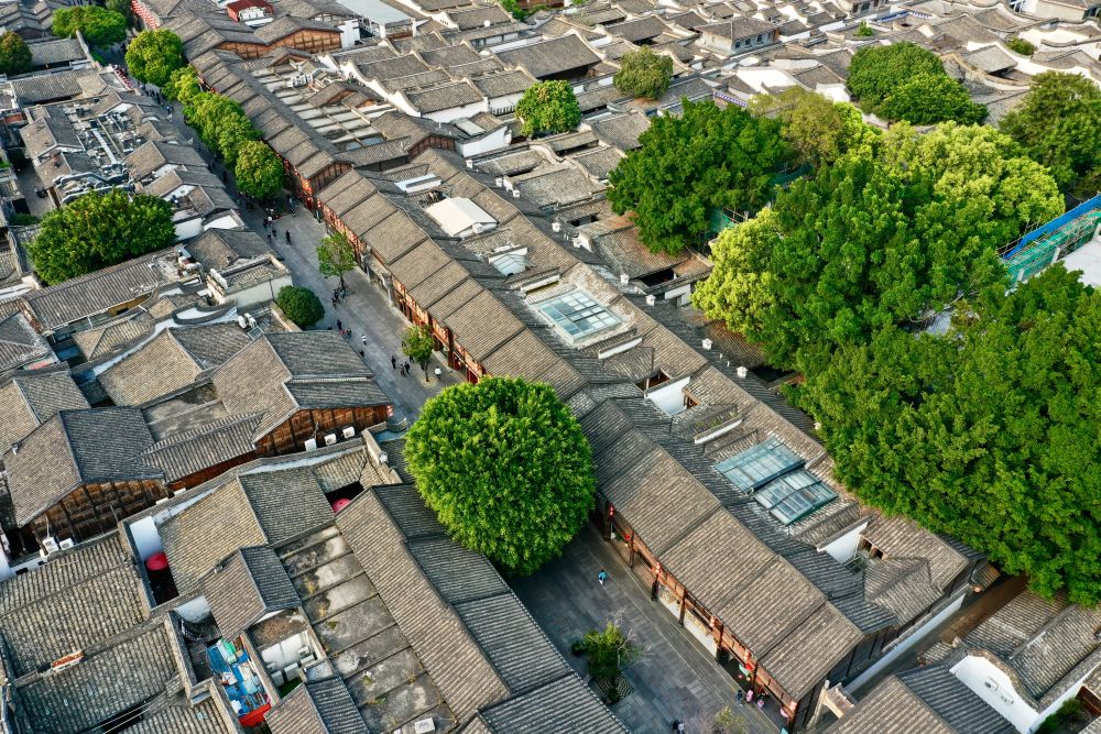 福州三坊七巷文化街區的古厝綠樹(2021年3月17日攝,無人機照片)。新華社記者 姜克紅 攝