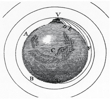 牛頓的山頂炮彈發射的理想實驗(http://galileo.phys.virginia.edu/classes/152.mf1i.spring02/DiscoveringGravity.pdf)