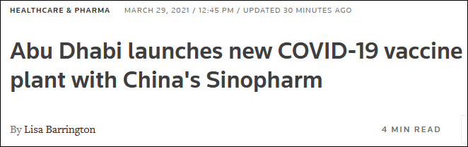 中國與阿聯酋啓動合作灌裝中國疫苗生產線項目,美媒酸了