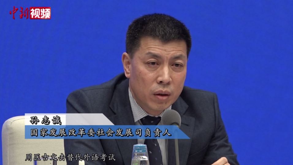 國家發改委社會發展司負責人孫志誠:申請中醫專業學位允許用醫古文替代外語考試