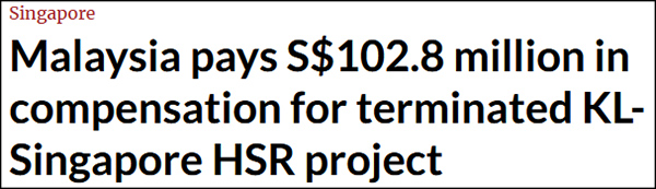 隆新高鐵項目終止,馬來西亞向新加坡賠償1.02億新元