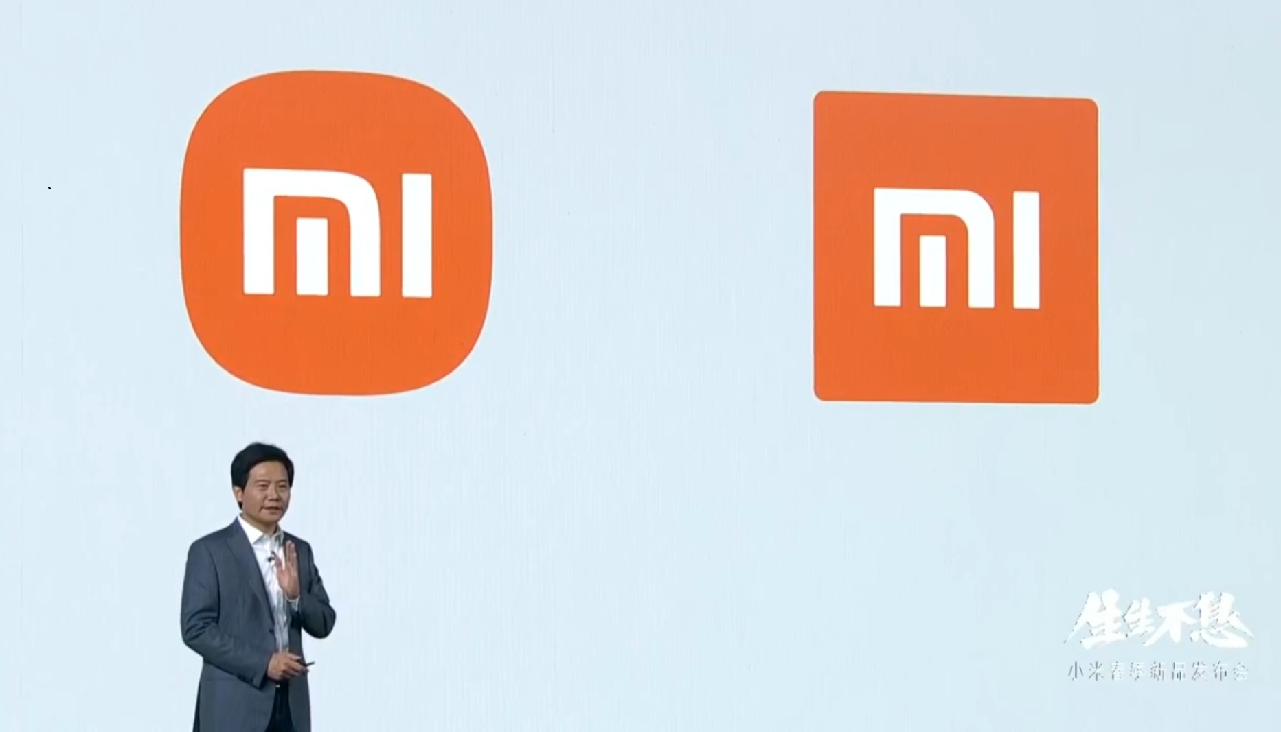 小米新LOGO(左側)與舊LOGO(右側) 小米發佈會直播截圖