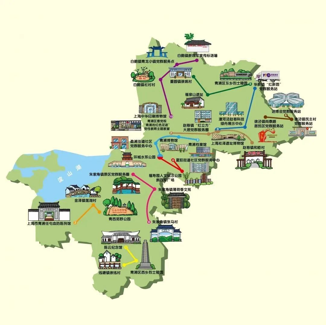 作為進博會永久舉辦地和長三角生態綠色一體化發展示範區建設的主陣地,青浦區立足區位特點,緊扣建黨百年重要時間節點,做好紅色陣地建設三篇大文章。**一是革故鼎新,****做好資源整合文章。按照“新增一批、調整一批”的原則,開展新一輪區級愛國主義教育基地評審命名,全力推動全區各級各類愛國主義教育基地實施數字化提升改造工作,拓展教育服務功能。同時,系統梳理調查區域紅色資源,發掘地區紅色史蹟、革命遺址、舊址等18處,釐清紅色文化歷史脈絡,因地制宜開展挖掘保護,着手編制《青浦紅色文化地圖》。二是分類佈局,****做好地標建設文章。**加快推進青浦全域黨羣體系建設,青西地區融入示範區背景和元素,着力建設新時代長三角一體化示範區黨建創新實踐基地;青浦新城地區聚焦民生改善和幸福感提升,着力建設環城水系黨羣服務秀帶;青東地區緊扣服務進博會和虹橋國際樞紐建設,着力推進西虹橋黨羣服務中心建設,共同打造黨史學習教育的重要平台和為民服務的幸福陣地。**三是串珠成鏈,****做好紅色集羣文章。**在示範區黨建“1+2”文件引領下,深入挖掘、系統梳理青吳嘉三地紅色資源,共同掛牌首批30個示範區黨羣服務陣地,形成一體化“示範區紅色陣地地圖”和一覽式“示範區紅色陣地清單”,推出10條示範區黨史學習教育精品線路,推動示範區紅色資源共建共享。