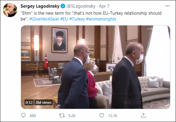 此外,歐洲議會德國議員拉戈丁斯基(Sergey Lagodinsky)也發推稱,馮德萊恩“額(Ehm)”的一聲似乎在表明“歐盟和土耳其的關係不應該是這樣”。