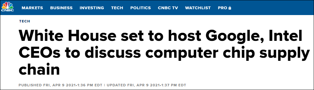 路透社和CNBC還介紹指出,通用汽車、福特汽車以及克萊斯勒母公司Stellantis NV這些汽車製造商也會派人出席會議。由於全球芯片的短缺,這一情況影響到了包括電動汽車和醫療用品等行業,例如通用和福特這樣的車企近期不得不削減產量預估值或延長停工時長以應對困局。