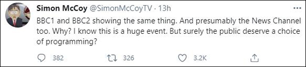 儘管一些觀眾對BBC的“大報特報”給予褒獎,認為它展現了“BBC最好的一面”,但也有一些“忍無可忍”的觀眾紛紛在推特上表達對BBC這一做法的強烈不滿。