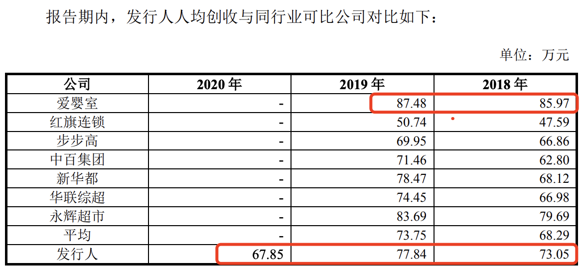 長期以來,孩子王人均創收水平一直低於愛嬰室12-15%左右。