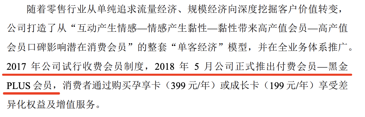 其中,收費會員在2017年試行。2018年5月,孩子王正式推出付費會員—黑金PLUS會員,消費者通過購買孕享卡(399元/年)或成長卡(199元/年)享受差異化權益及增值服務。