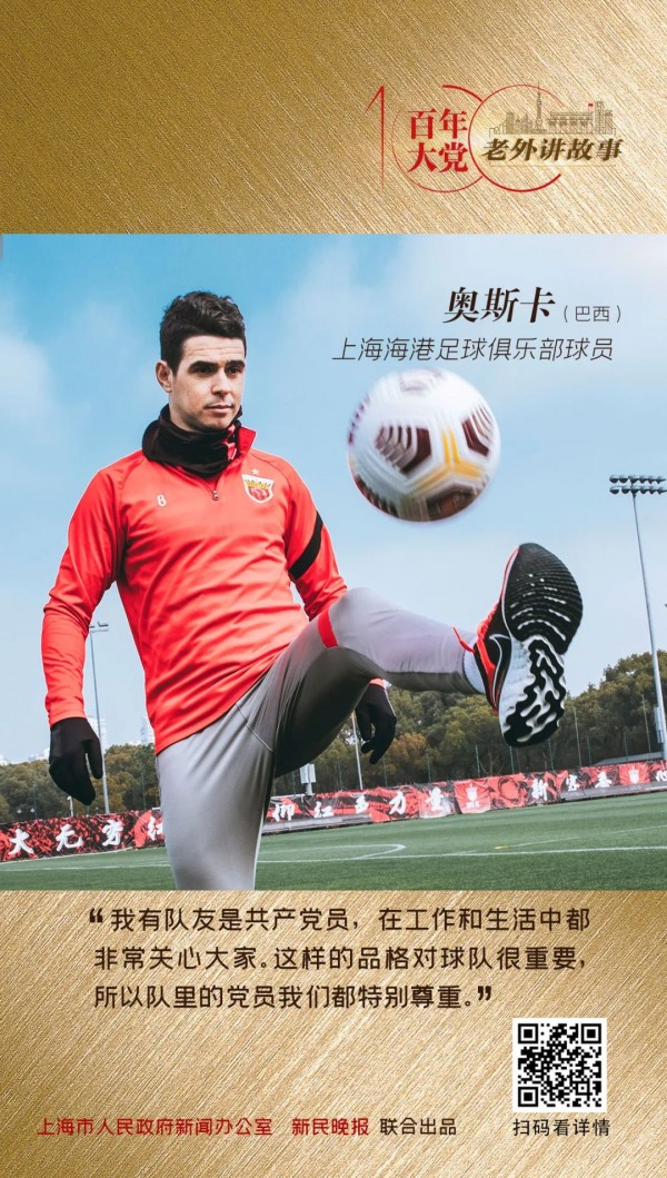 2016年12月25日,上海上港集團足球俱樂部(現上海海港足球俱樂部)給球迷們送上了一份大禮,國際知名球星奧斯卡加盟。從此,奧斯卡開啓了他的“上海生活”。在上海的5年間,奧斯卡和他的隊友奪得了2018年中超聯賽冠軍和2019年超級盃冠軍,他和隊友們還將繼續為榮譽而戰。