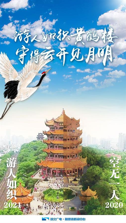 第一組是有着1700多年曆史的天下名樓——黃鶴樓,從空無一人到遊人如織。