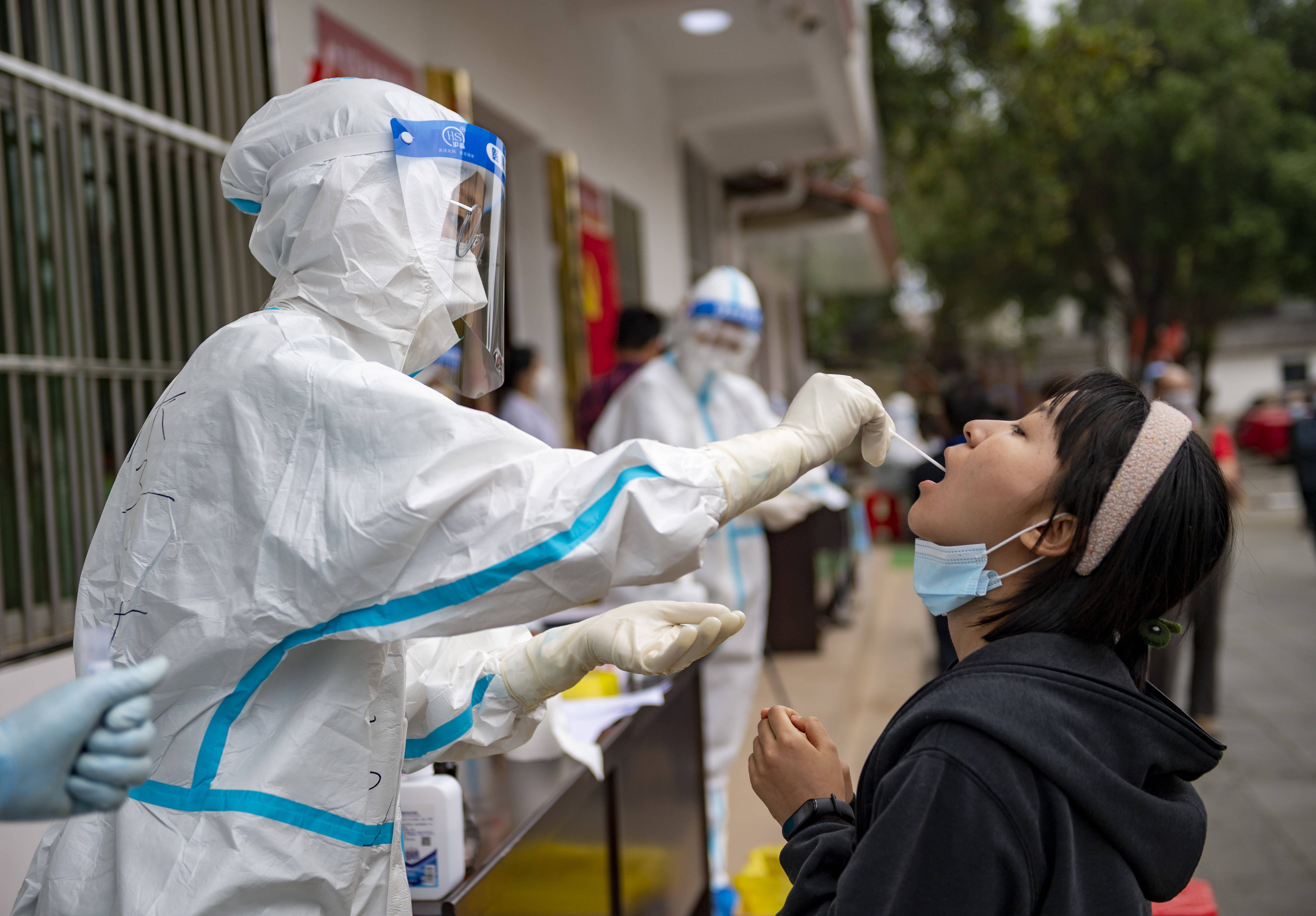 4月6日,在瑞麗市友誼社區一核酸檢測點,醫務人員進行核酸採樣工作 圖丨新華社