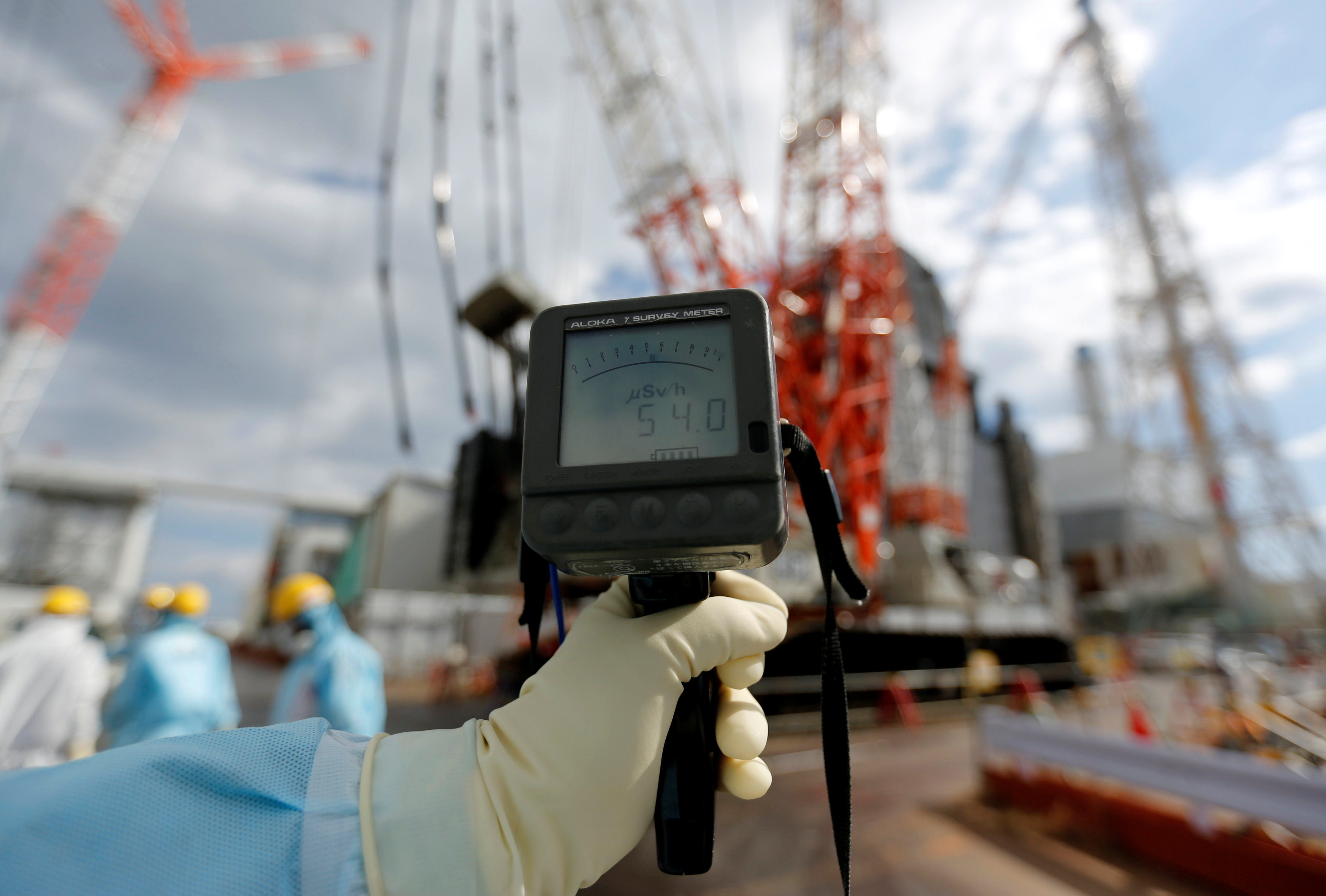 2019年2月18日,一名工作人員在日本福島第一核電站測量輻射值 資料圖丨新華社