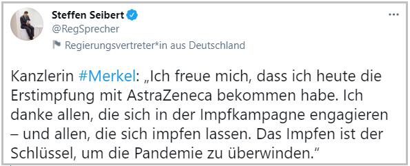 當地時間4月16日,德國聯邦政府發言人賽貝特(Steffen Seibert)在其社交媒體賬號上發文透露,66歲的德國總理默克爾當天已接種第一劑次阿斯利康新冠疫苗,並附上了接種記錄。默克爾表示,她感謝所有參與及接種疫苗的人,接種疫苗是對抗新冠大流行的關鍵。