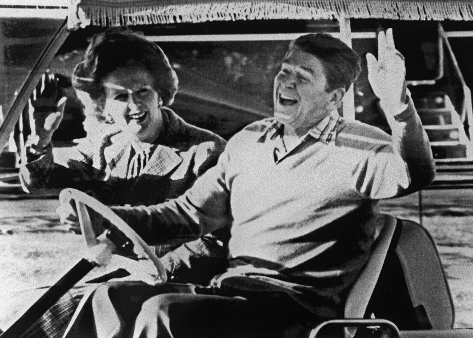 1984年12月22日,美國總統里根和撒切爾夫人抵達戴維營後揮手致意(圖源:中新網)
