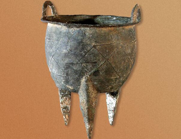 二里頭出土網格紋青銅鼎,圖自二里頭夏都遺址博物館。