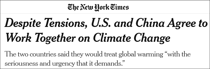 《紐約時報》:中美同意共同應對氣候變化