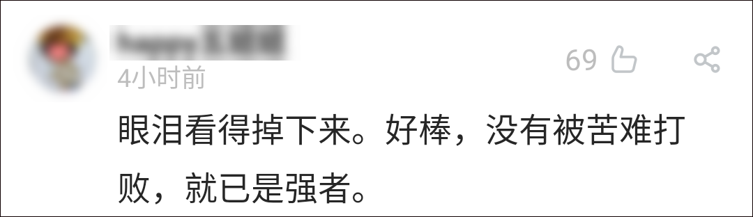 “眼淚看得掉下來。好棒,沒有被苦難打敗,就已是強者。”