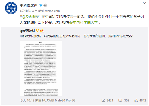 近日,一篇論文的《致謝》部分在微博、豆瓣等社交平台熱傳。有微博博主4月18日查詢出,該論文寫於2017年,來自中國科學院自動化所的一位同學。此消息得到中科院官方微博@中科院之聲 的證實。