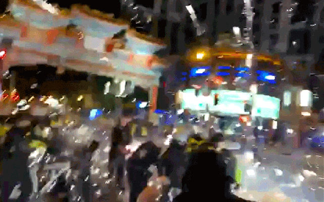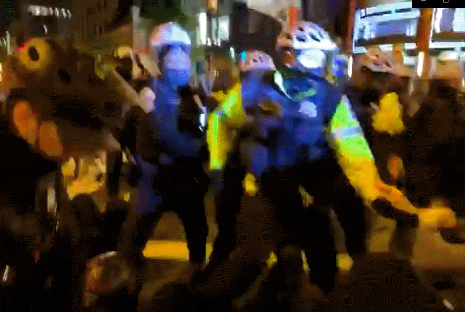 期間,不斷有示威者試圖解救被捕的同伴,並用激光筆照射警察,還有人朝警戒線投擲大型煙花和包括水瓶在內的碎片。