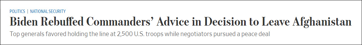 《華爾街日報》稱,這表明拜登認為阿富汗發生恐怖主義威脅的可能性已經降低,美軍撤離阿富汗的日期必須確定,這樣才能避免與塔利班重新開戰,以及無限期的軍事承諾。