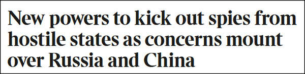 英國將宣佈針對“敵對國家”新法案,英媒:包括中俄