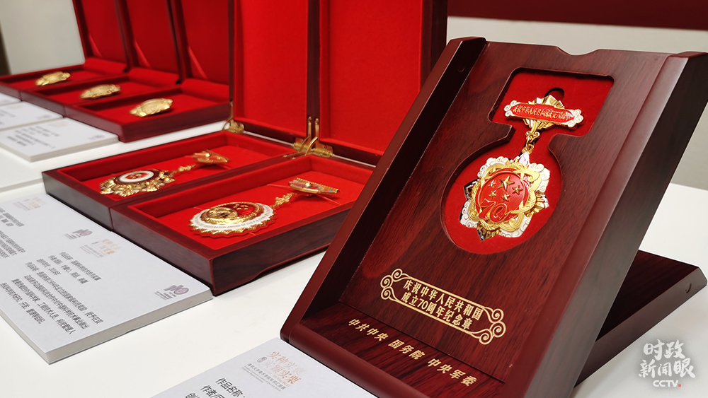 △清華美院校友夏鑫設計的“慶祝中華人民共和國成立70週年”紀念章(總枱央視記者趙化拍攝)