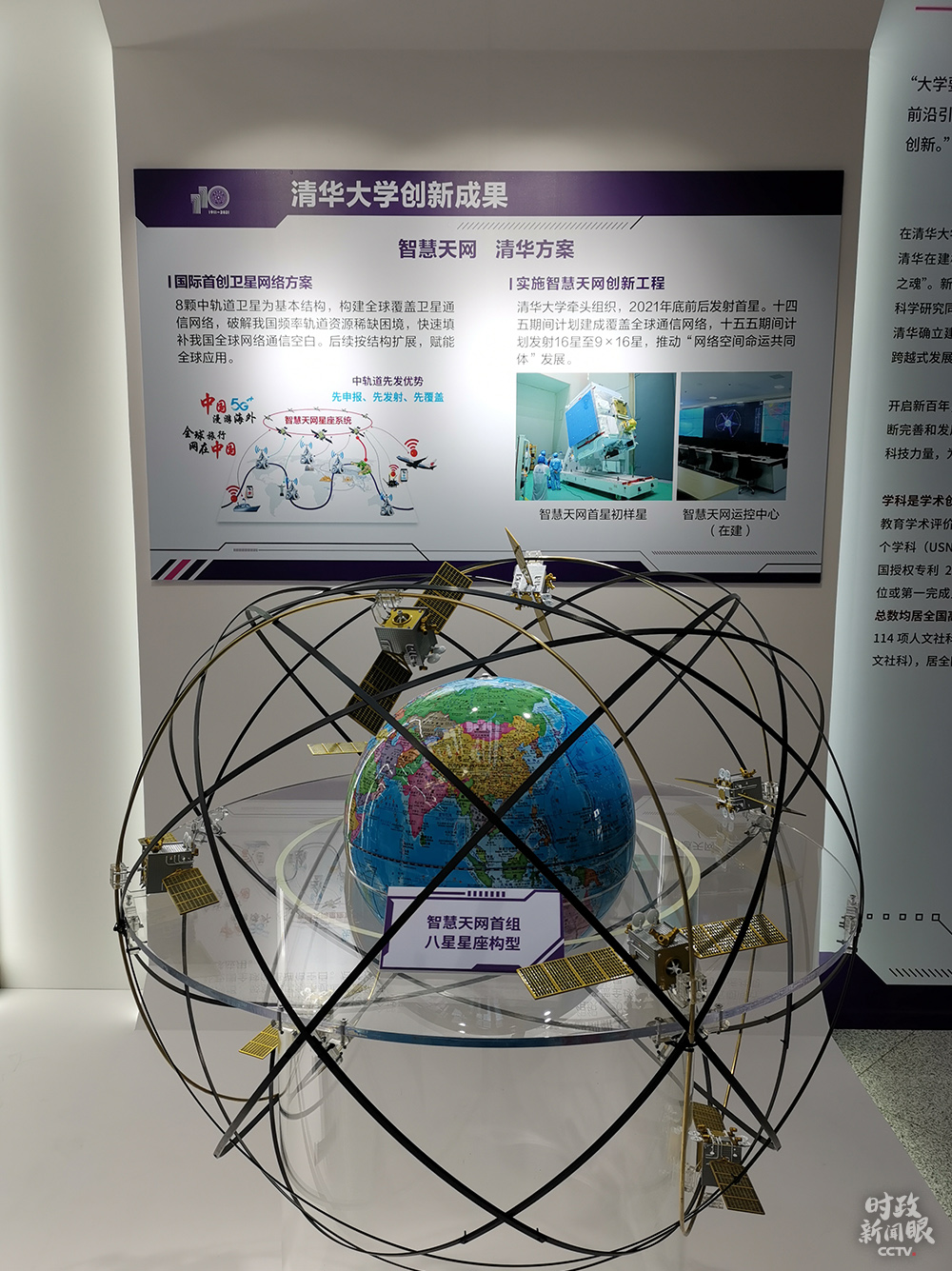 △智慧天網首組八星星座構型,以8顆中軌道衞星為基本結構,構建全球覆蓋衞星通信網絡,破解我國頻率軌道資源稀缺困境。(總枱央視記者魏建拍攝)