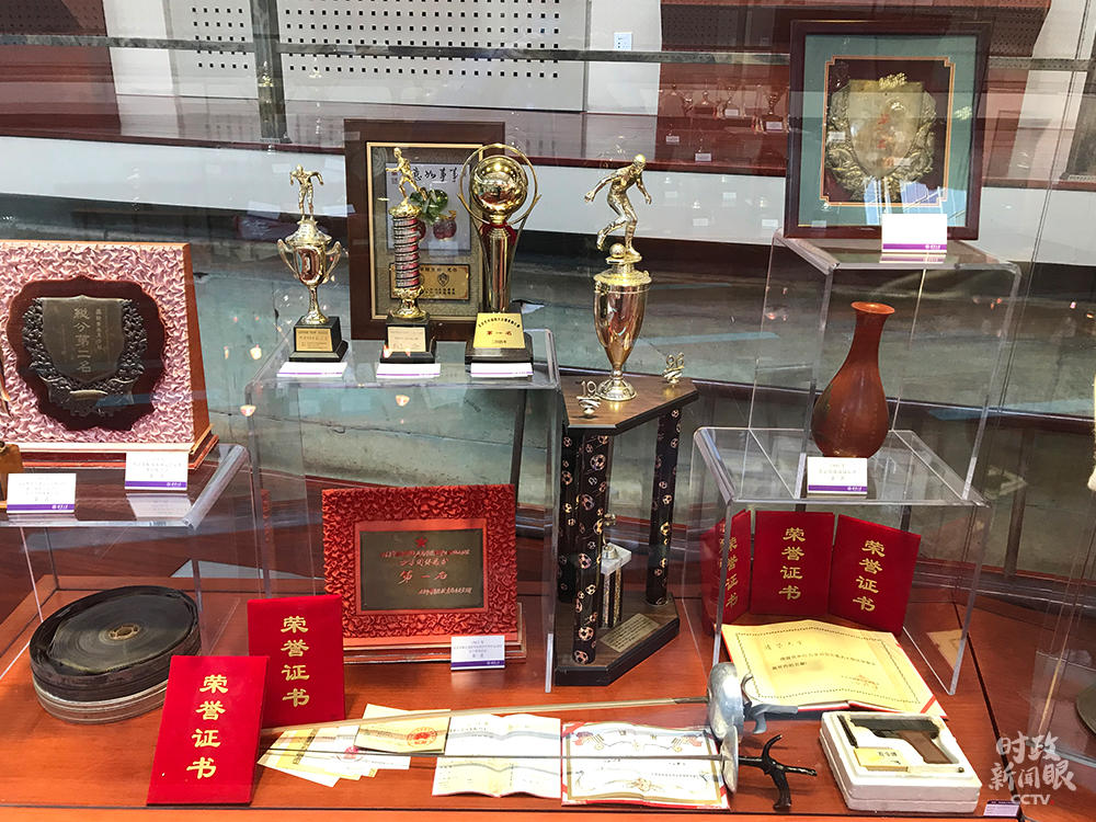 △陳列在體育榮譽室的獎盃、證書(總枱央視記者許達拍攝)